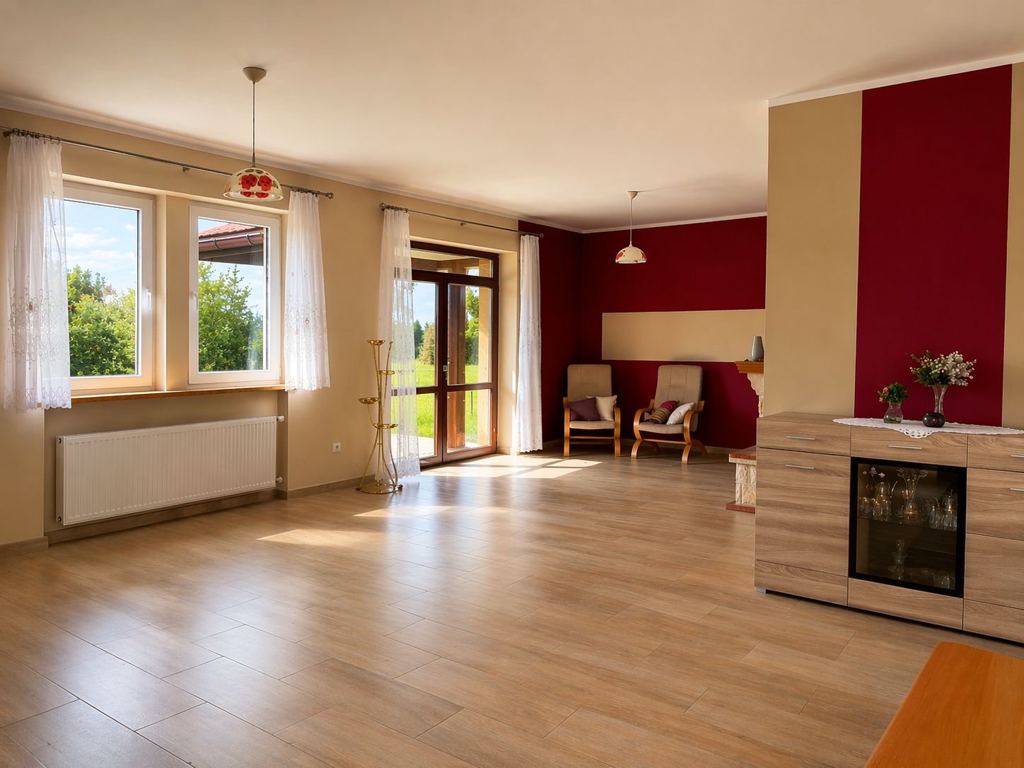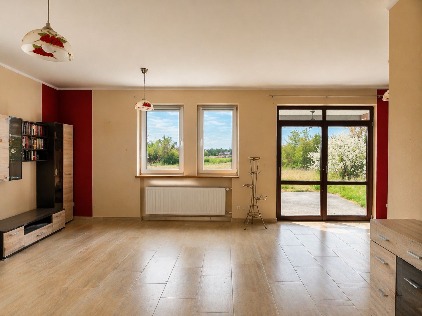 duży salon z wyjściem na taras
