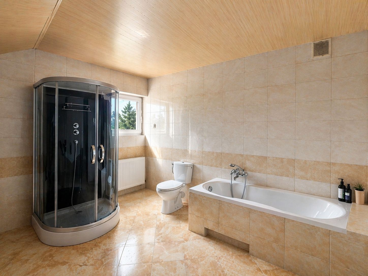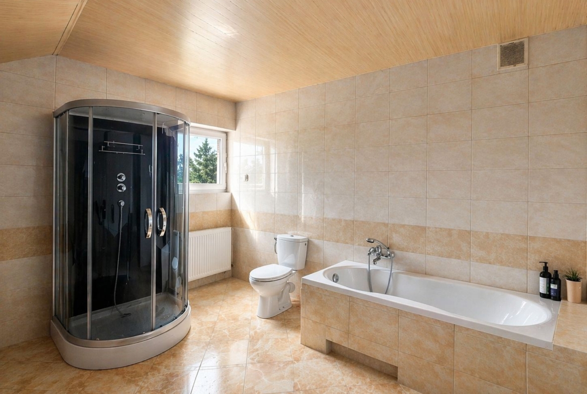 duża gotowa łazienka z wanną i prysznicem