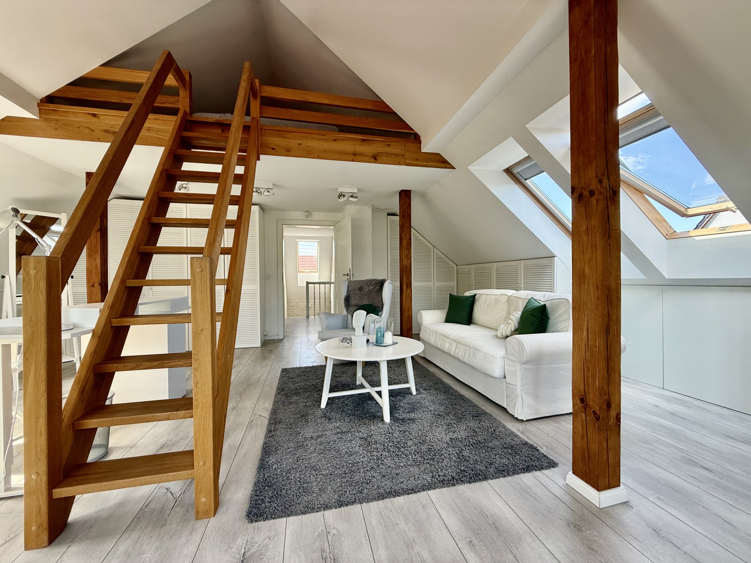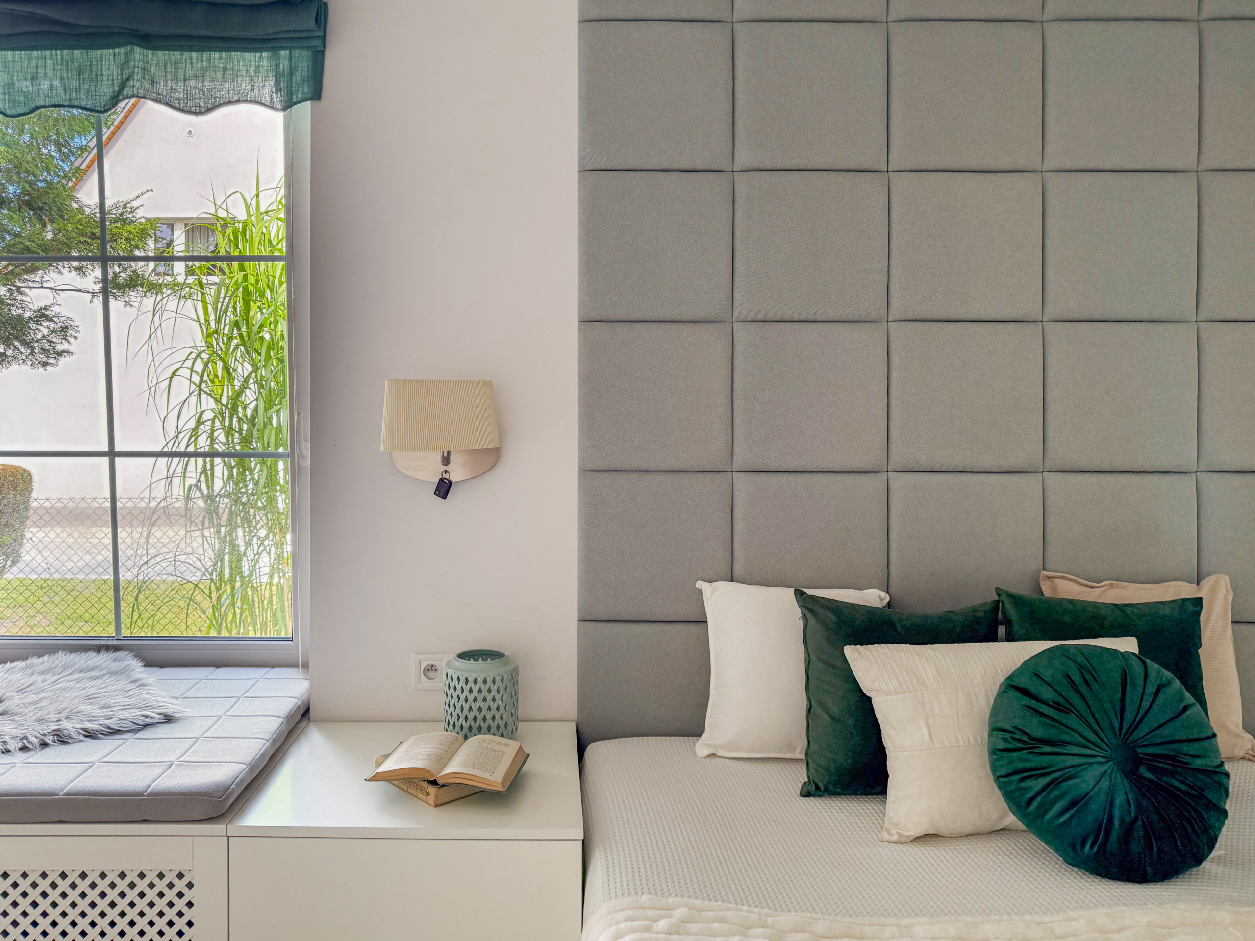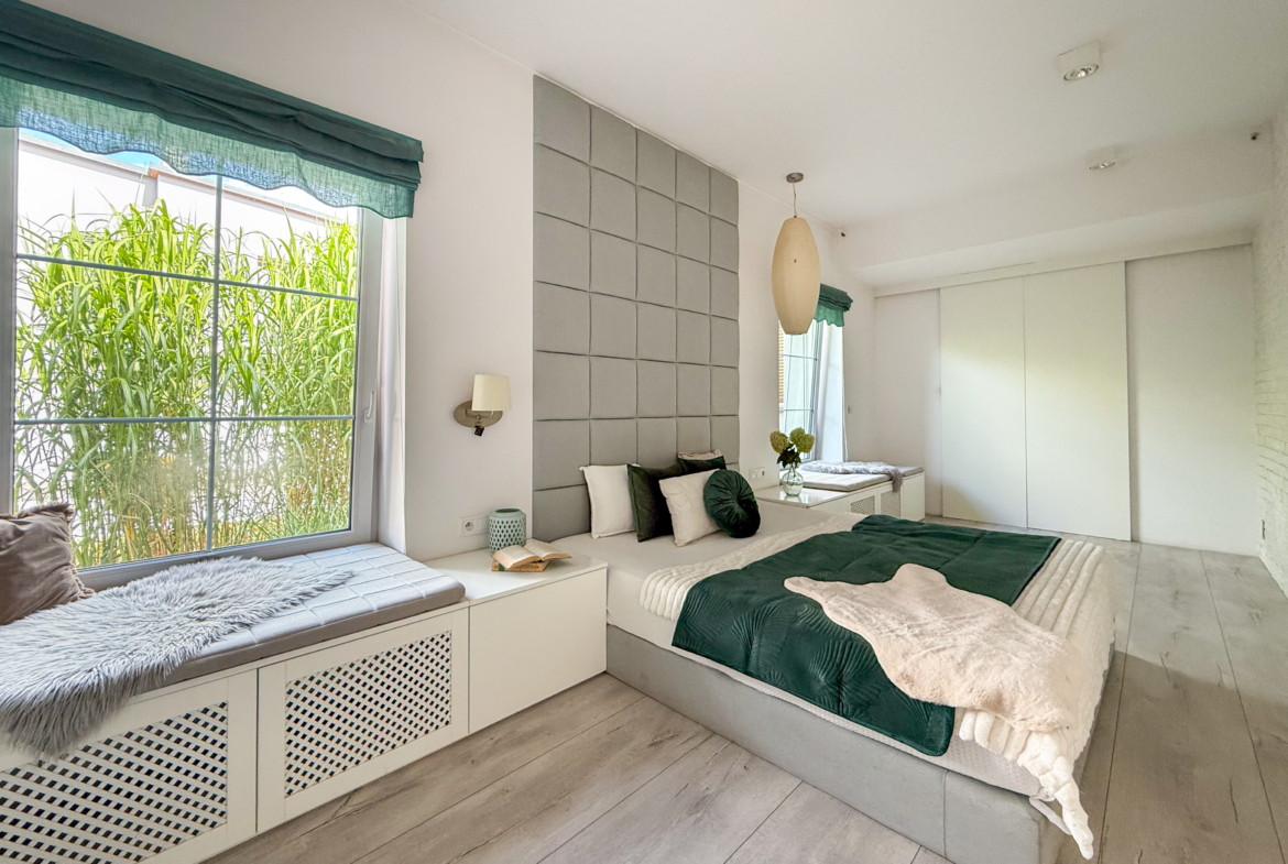 - Wyjątkowy pokój na poddaszu z antresolą, dużymi oknami dachowymi i zabudowanymi szafami – idealny jako pokój dziecięcy, młodzieżowy, biblioteka, domowe biuro lub pracownia. Wygodne siedzisko przy oknie z widokiem na ogród tworzy idealne miejsce do relaksu z książką i filiżanką herbaty