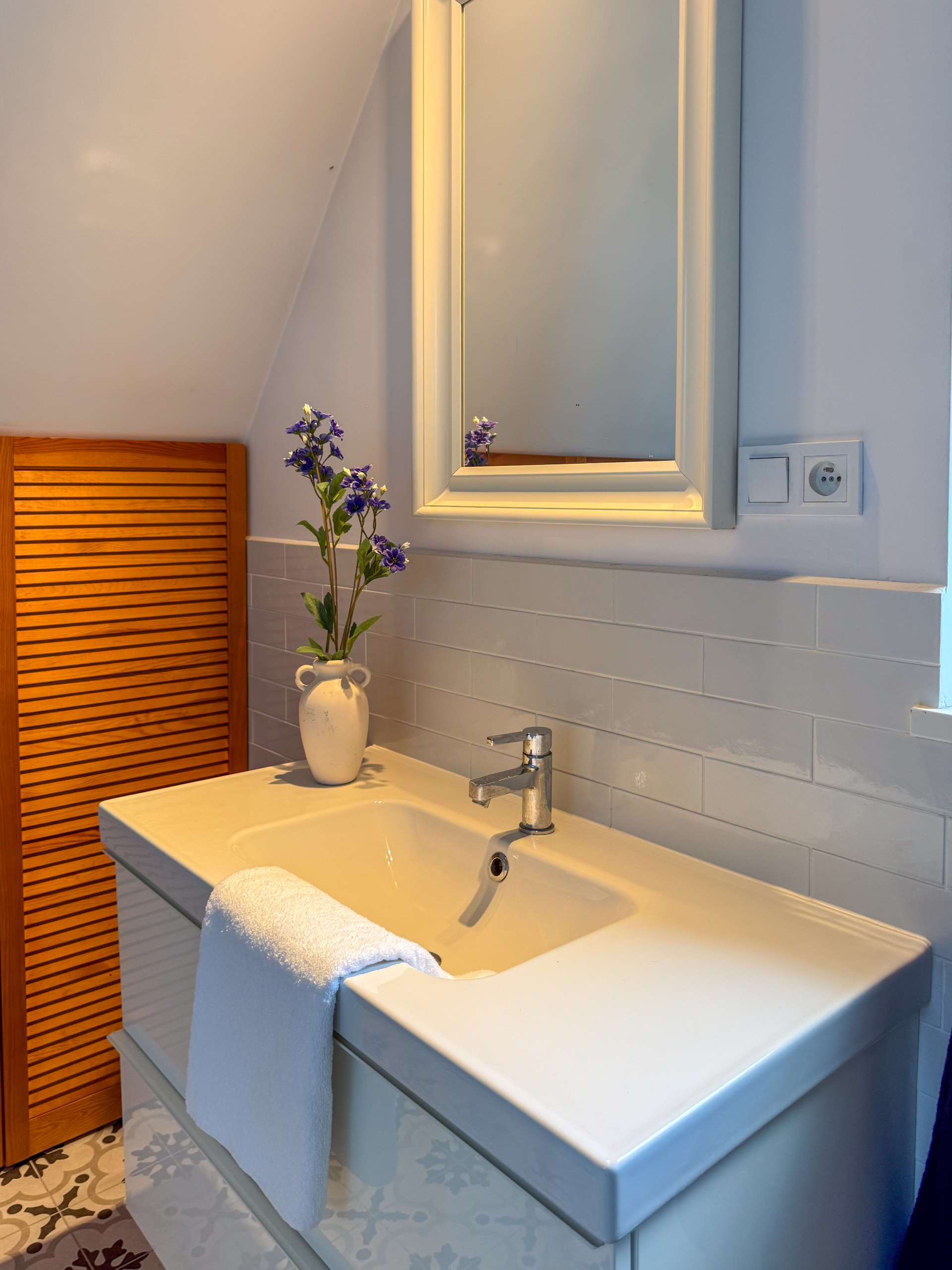 - Komfortowa łazienka z wanną i kabiną prysznicową