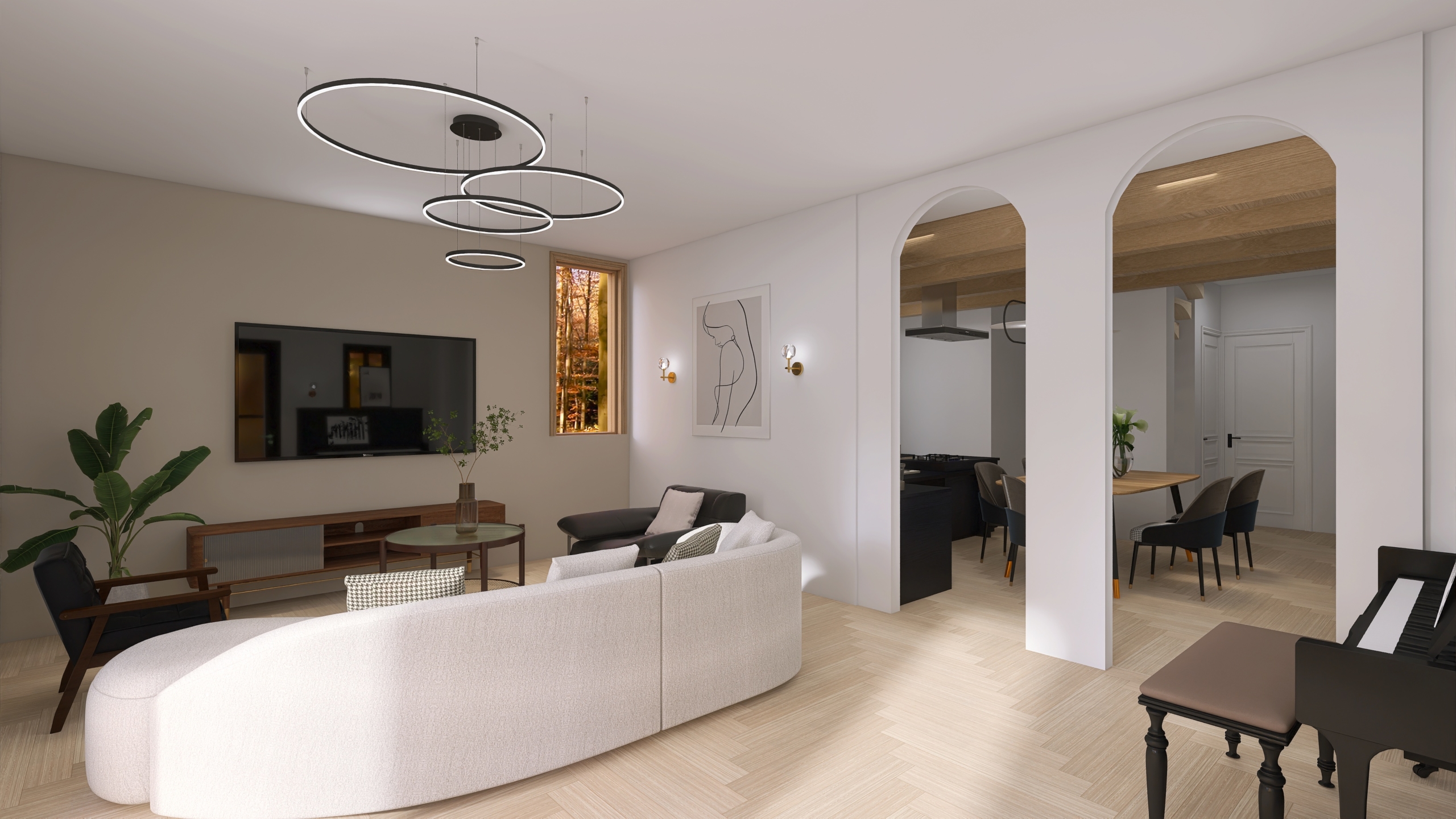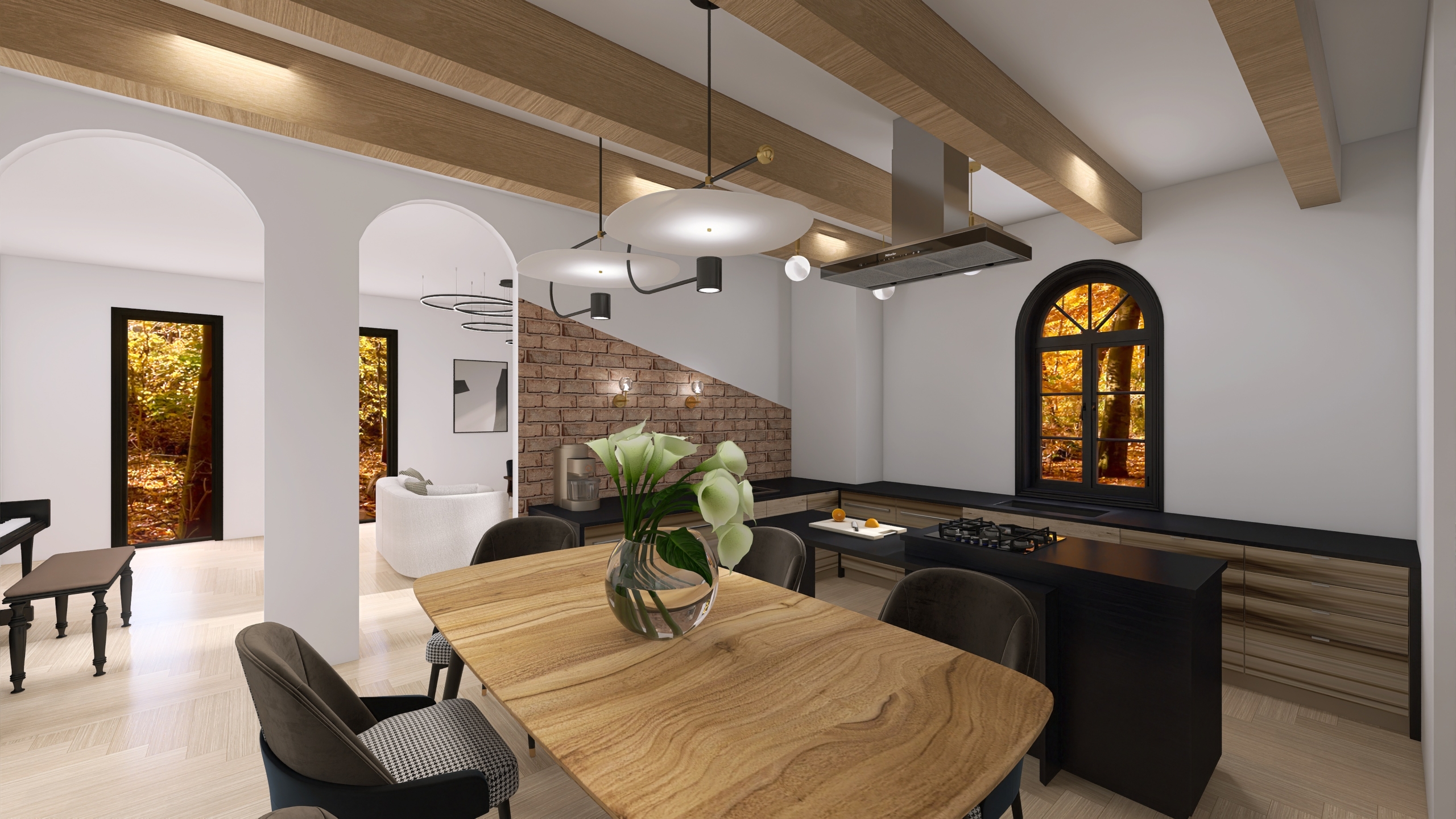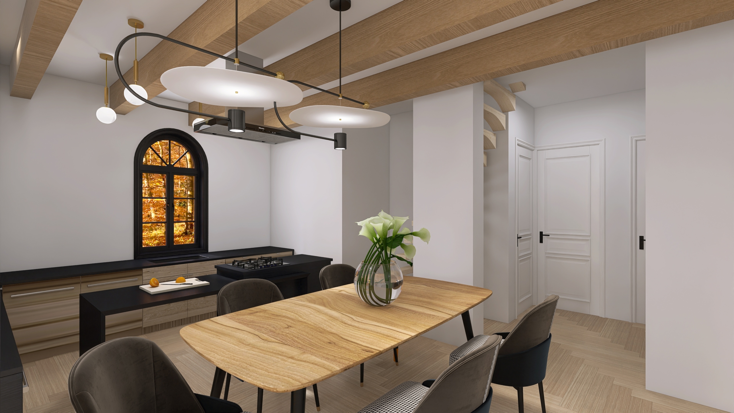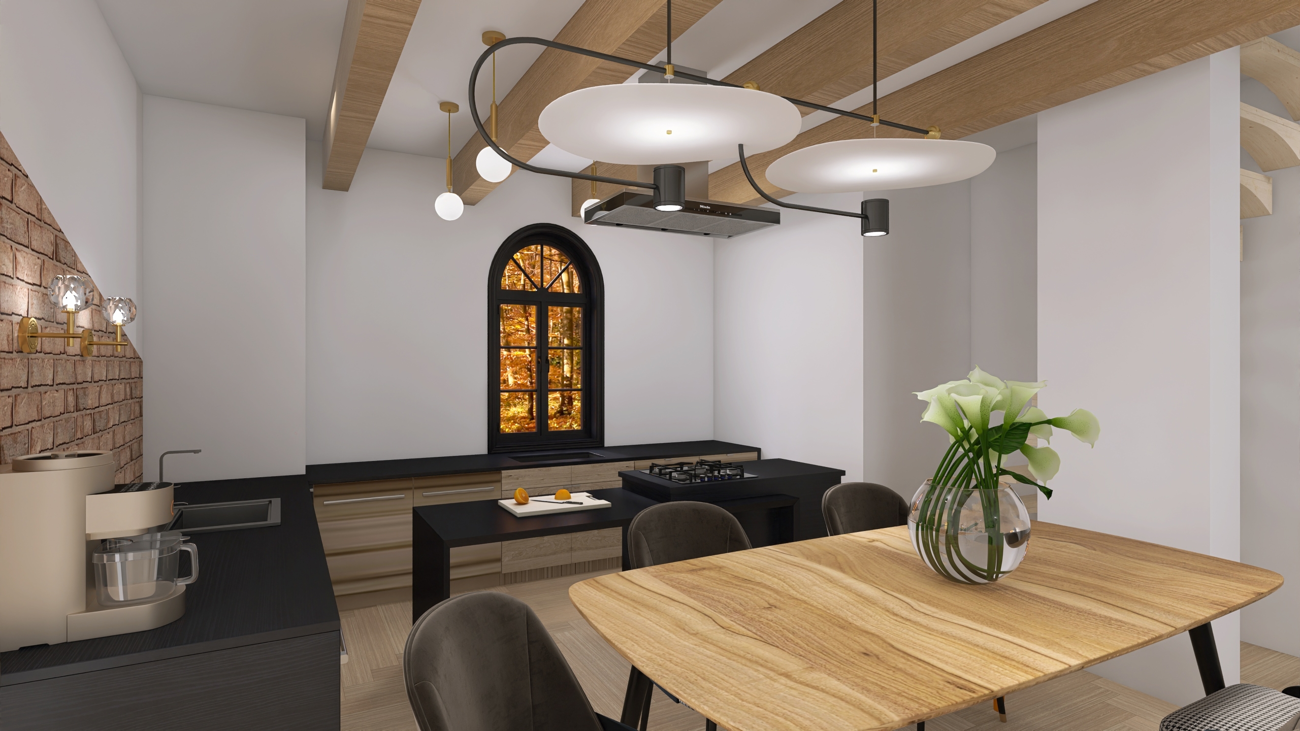 - przestronna kuchnia z jadalnią i stylowym wykuszem,