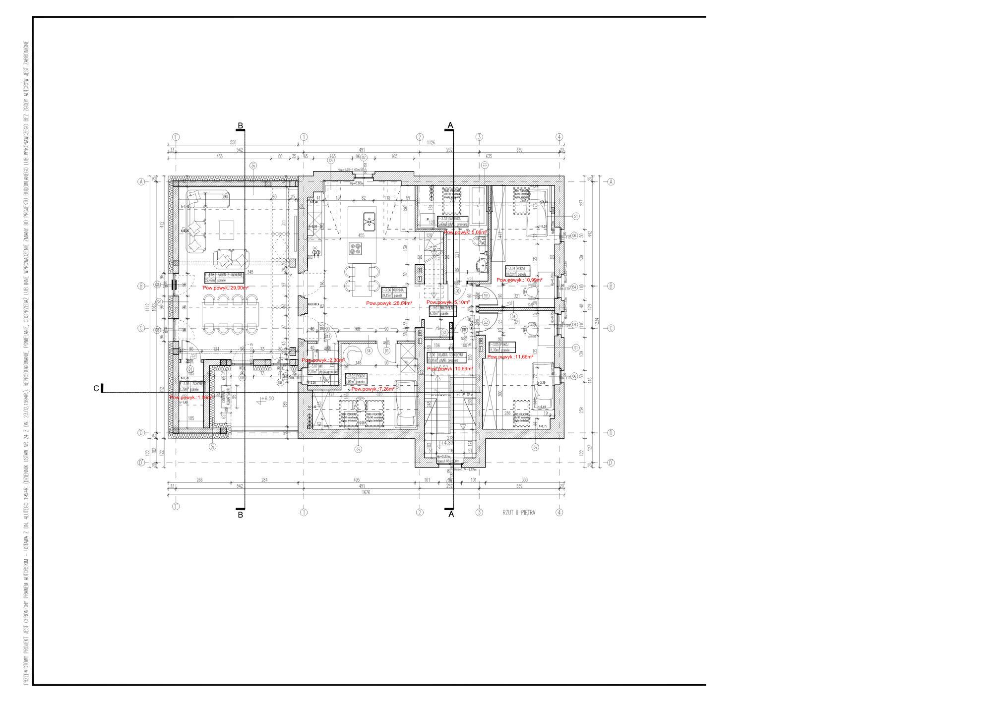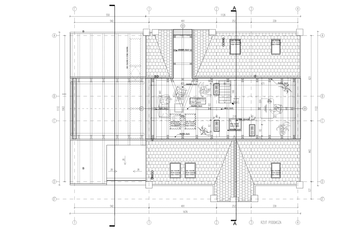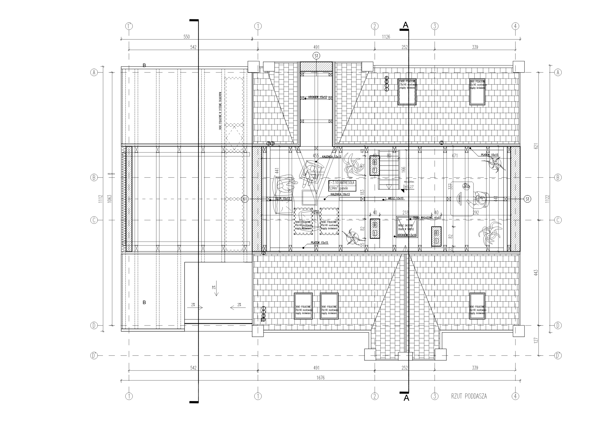 - salon z odkrytą połacią dachu (wysokość do kalenicy 4,5 m),