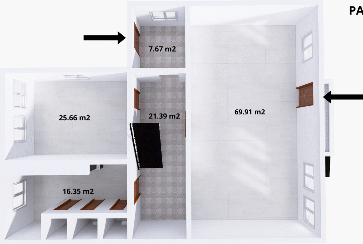 Możliwość wydzielenia 10 kawalerek + mieszkanie dwupokojowe.