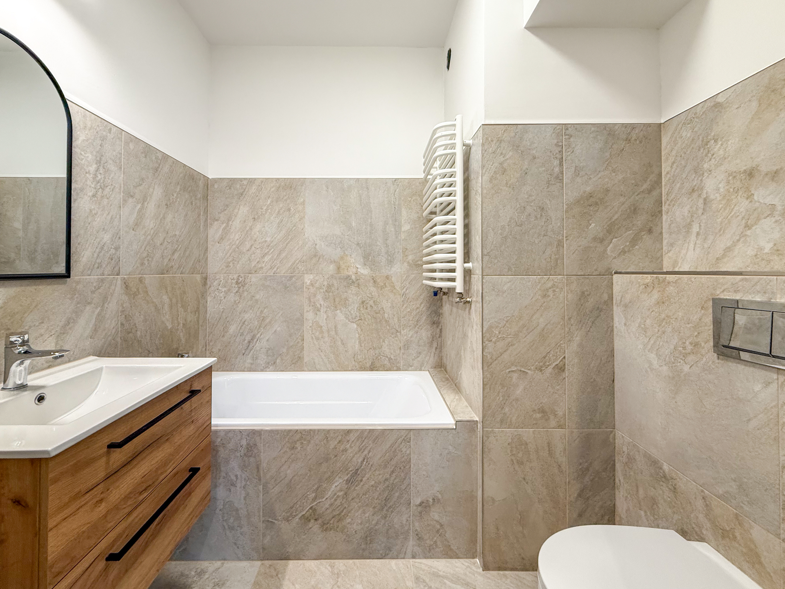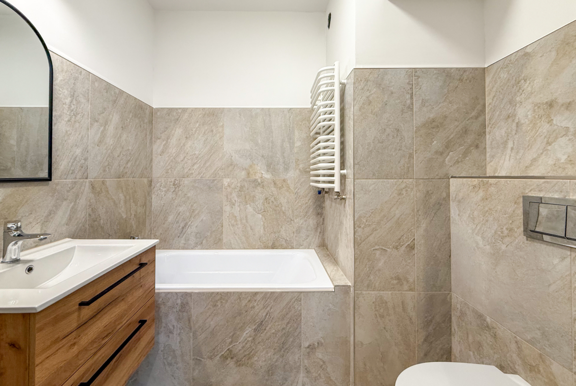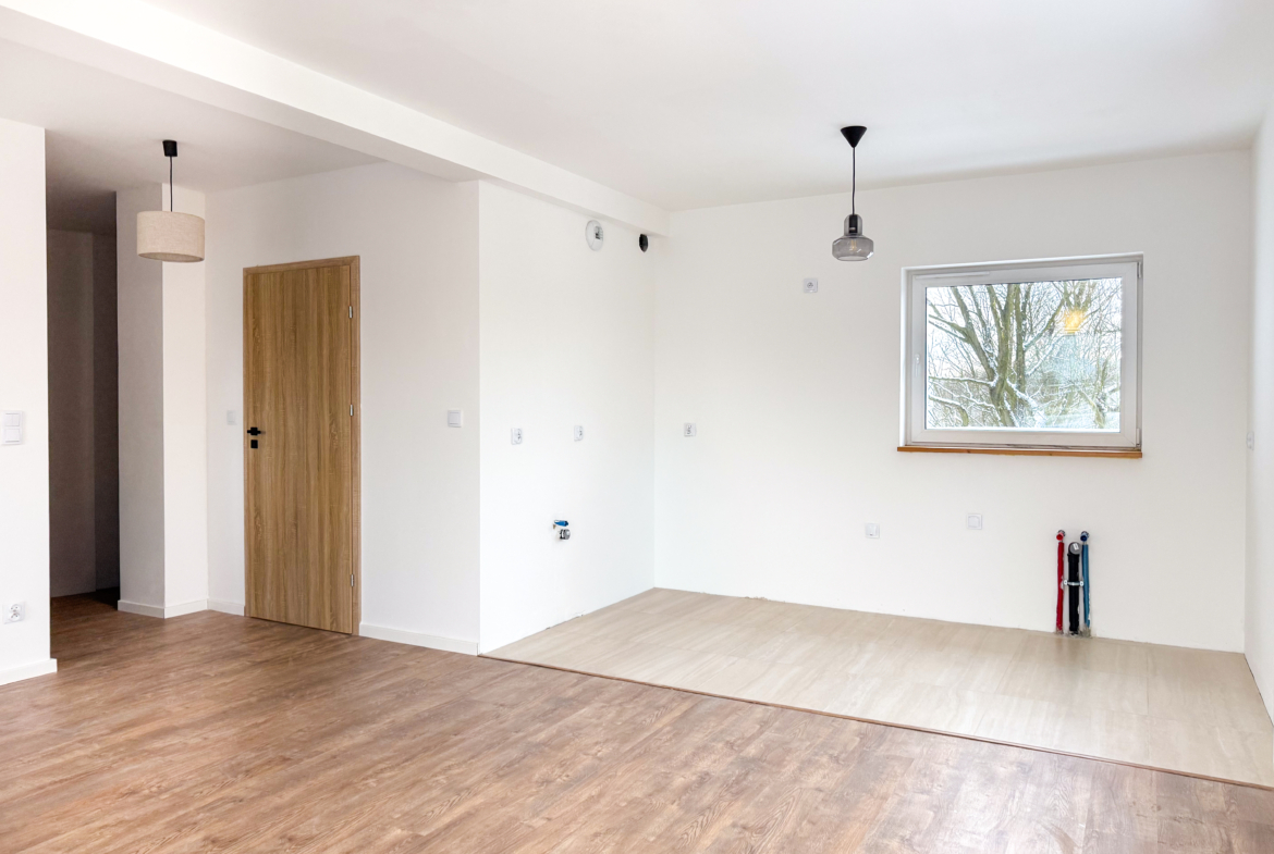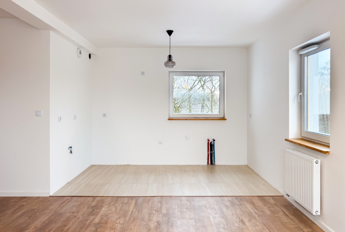 Łazienka została wykończona w 2025 roku – nowa, nieużywana. Pozostałe pomieszczenia w nowoczesnym, neutralnym standardzie, dającym możliwość łatwej aranżacji według własnych potrzeb.