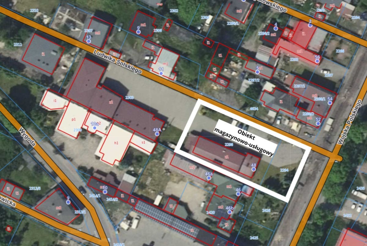 Obiekt znajduje się na działce o powierzchni 1621 m2 i obejmuje halę magazynową o powierzchni 192m2 i wysokości 4,5m2 oraz budynek socjalny 55m2.