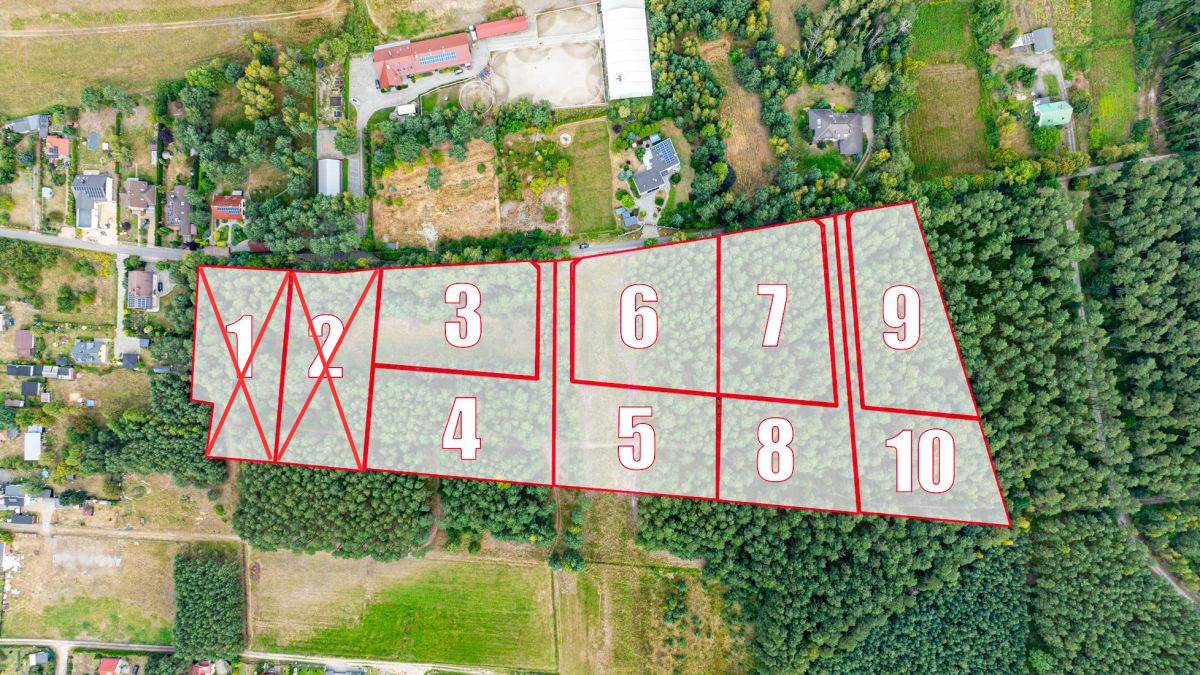 Aktualnie w ofercie naszego biura dostępnych jest 10 działek o podanych powierzchniach: